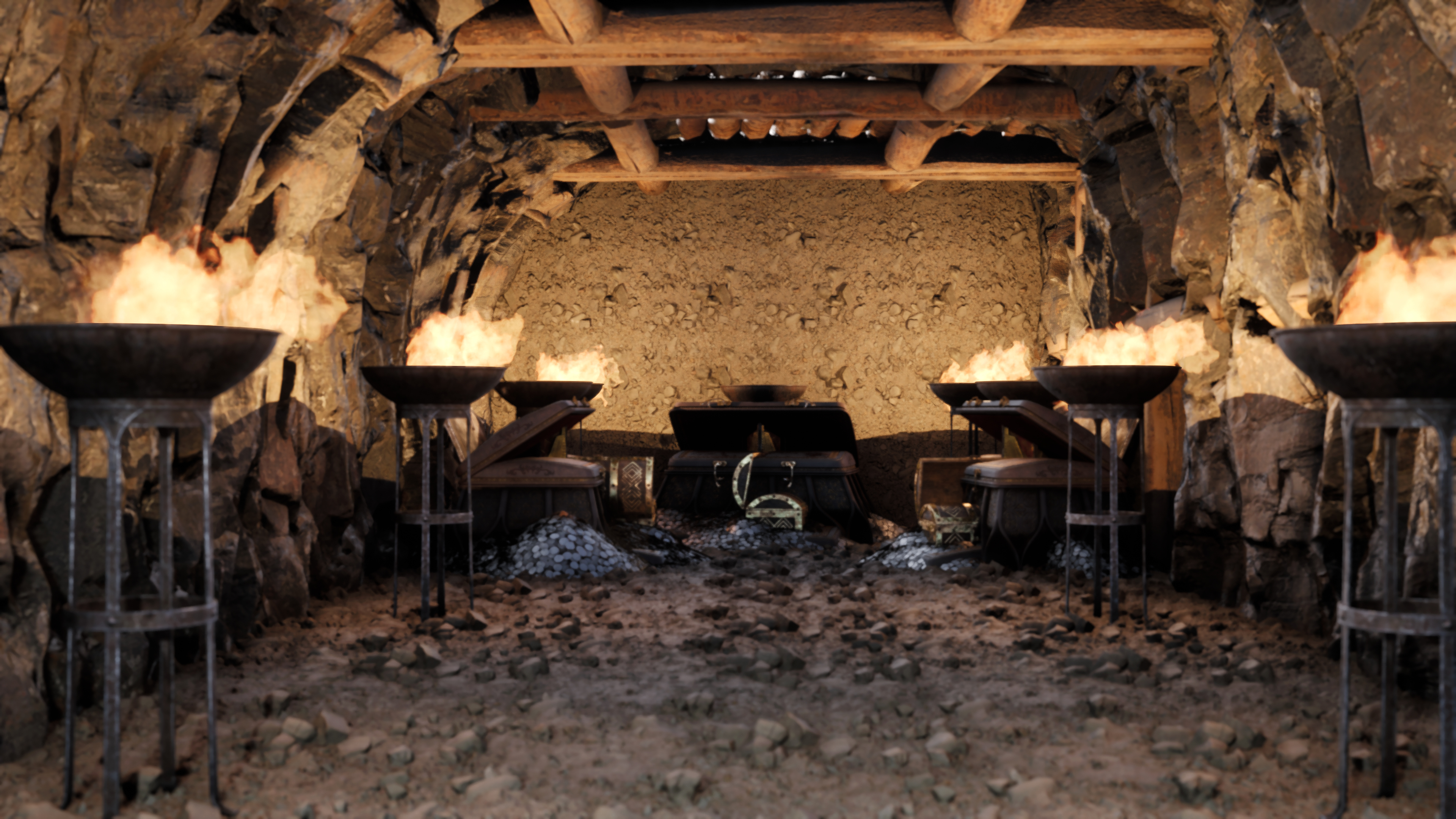 - When all Lanterns are placed, the cave doors will open with a magical wind gust.